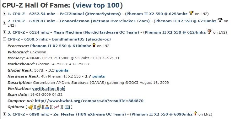 Sekali lagi, hasil yang cukup memuaskan bagi kami. Dengan suhu 165-168 C, kami berhasil meraih clock 6.1Ghz dengan board ini...... Dan posisi 4 di Hwbot.......